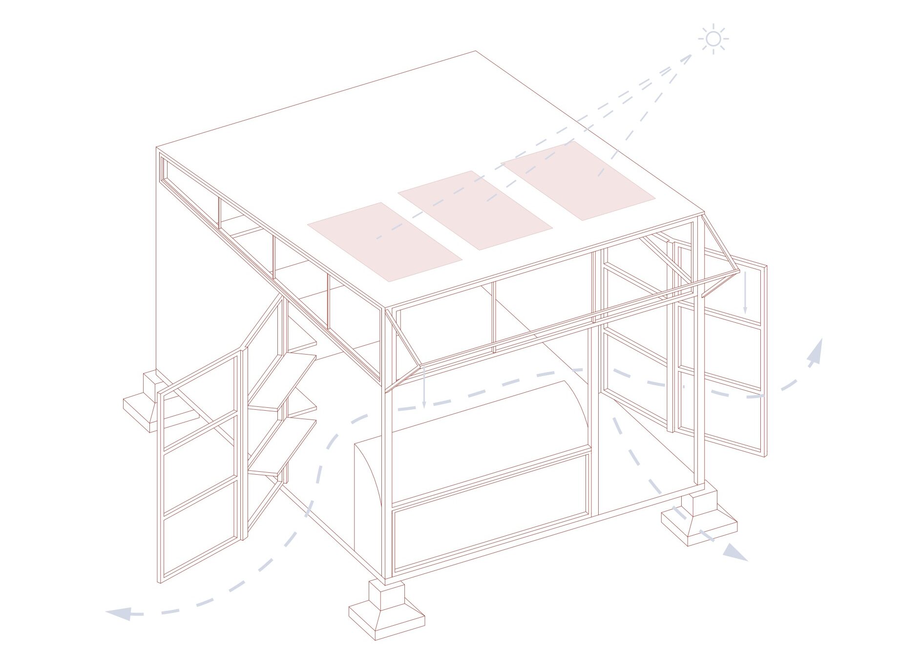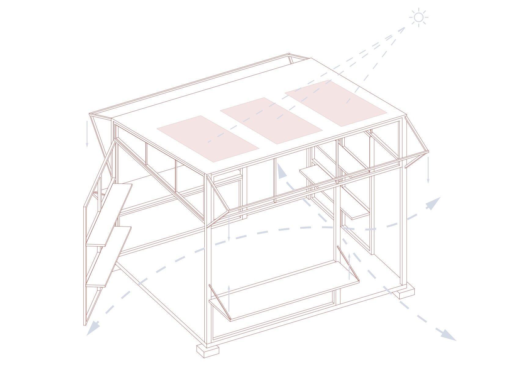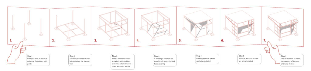 The market is structured around a modular glulam frame, resting on concrete footings with standardized steel joints for strength and ease of assembly. This system allows phased construction, simple maintenance, and long-term adaptability.