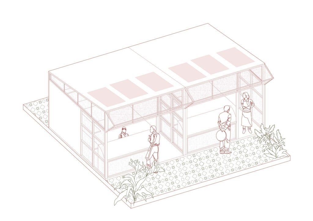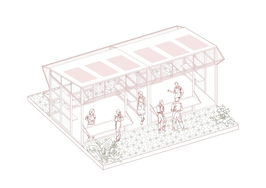 The modular design ensures constructive realism – balancing ambition with feasibility. Prefabricated timber elements are combined with lightweight polycarbonate glazing, offering durability and affordability. Canopy elements can fold down for closure, while stall modules can be reconfigured or replaced without disrupting the wider structure. This approach reduces costs, speeds up assembly, and ensures the market remains resilient, adaptable, and future-proof.