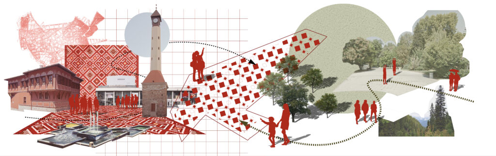 The design draws inspiration from Bulgarian cultural heritage, using the traditional Shevitsa pattern as a foundation. This motif is reinterpreted into an architectural language, shaping the geometry of the masterplan and weaving cultural identity into the public realm.