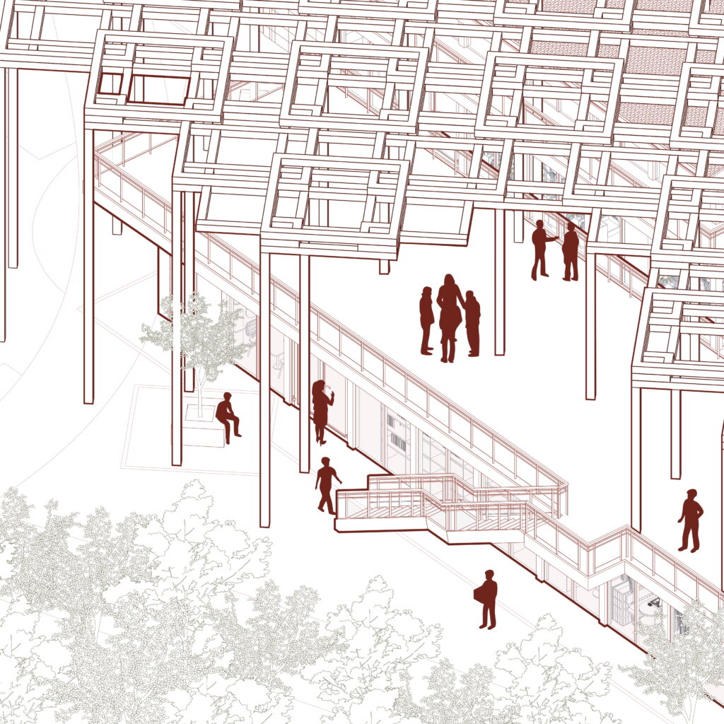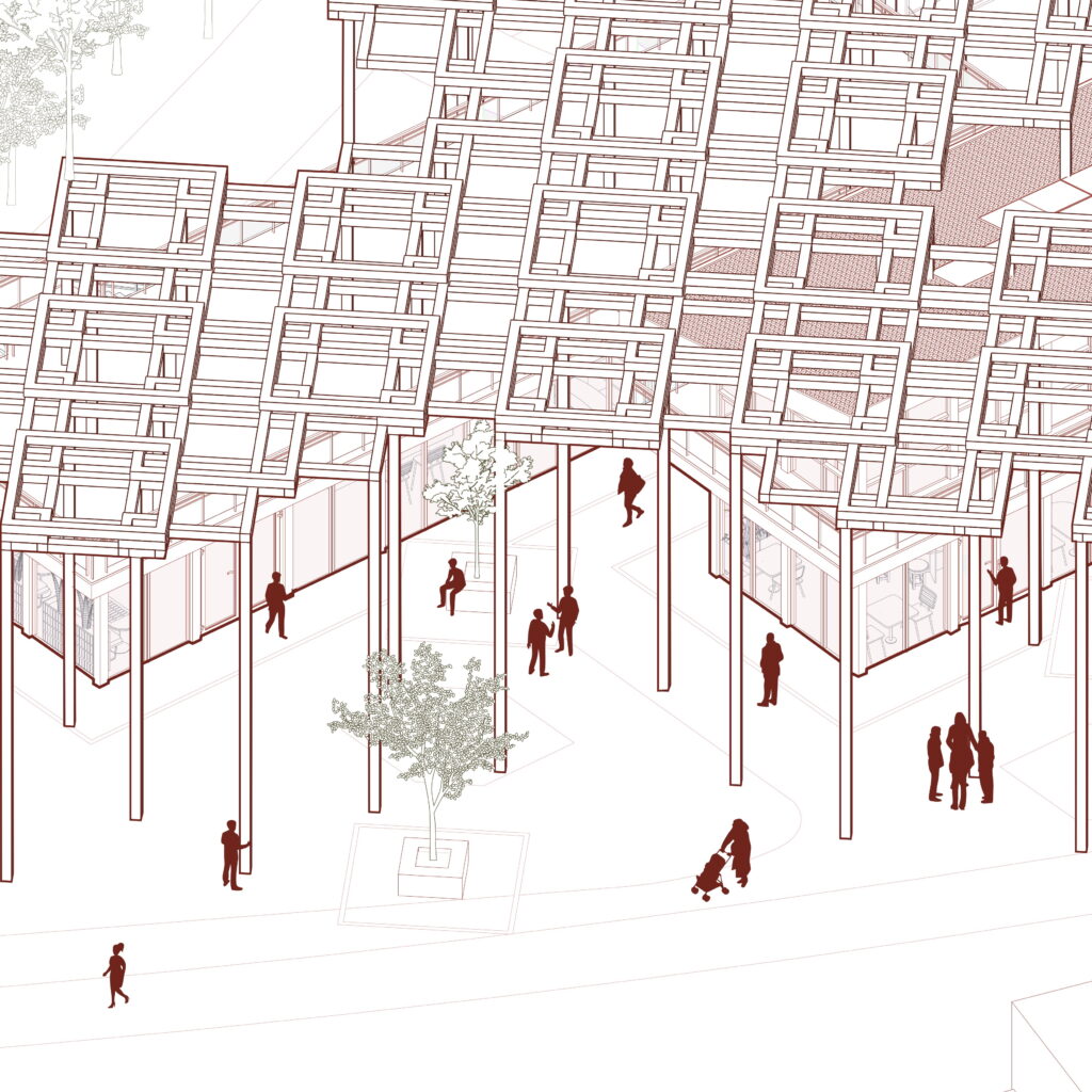 Guided by the idea that architecture should accompany daily life, the timber canopy filters sunlight, channels wind, and creates comfortable microclimates. The market becomes a flexible framework for collective life, adaptable across seasons and urban rhythms.